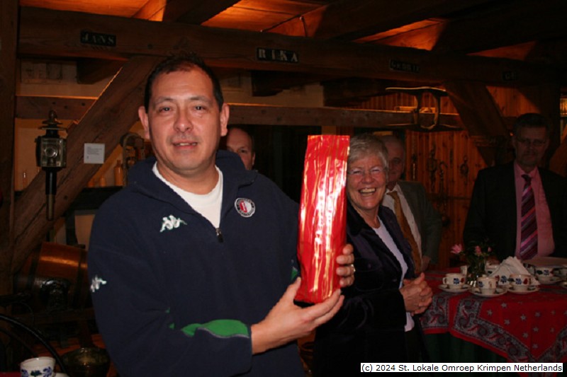 - Nieuwjaarsreceptie LOK 2006 in het Streekmuseum | Alfons Schramm krijgt een flesje...