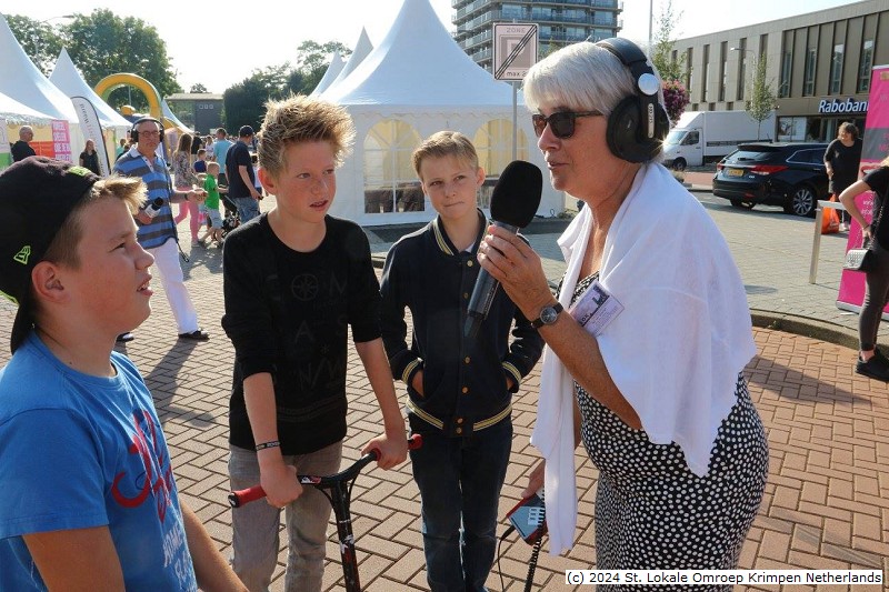 - Krimpenfestival 2016 | Nel interviewt een aantal kinderen (foto: Jeroen van Zomeren)